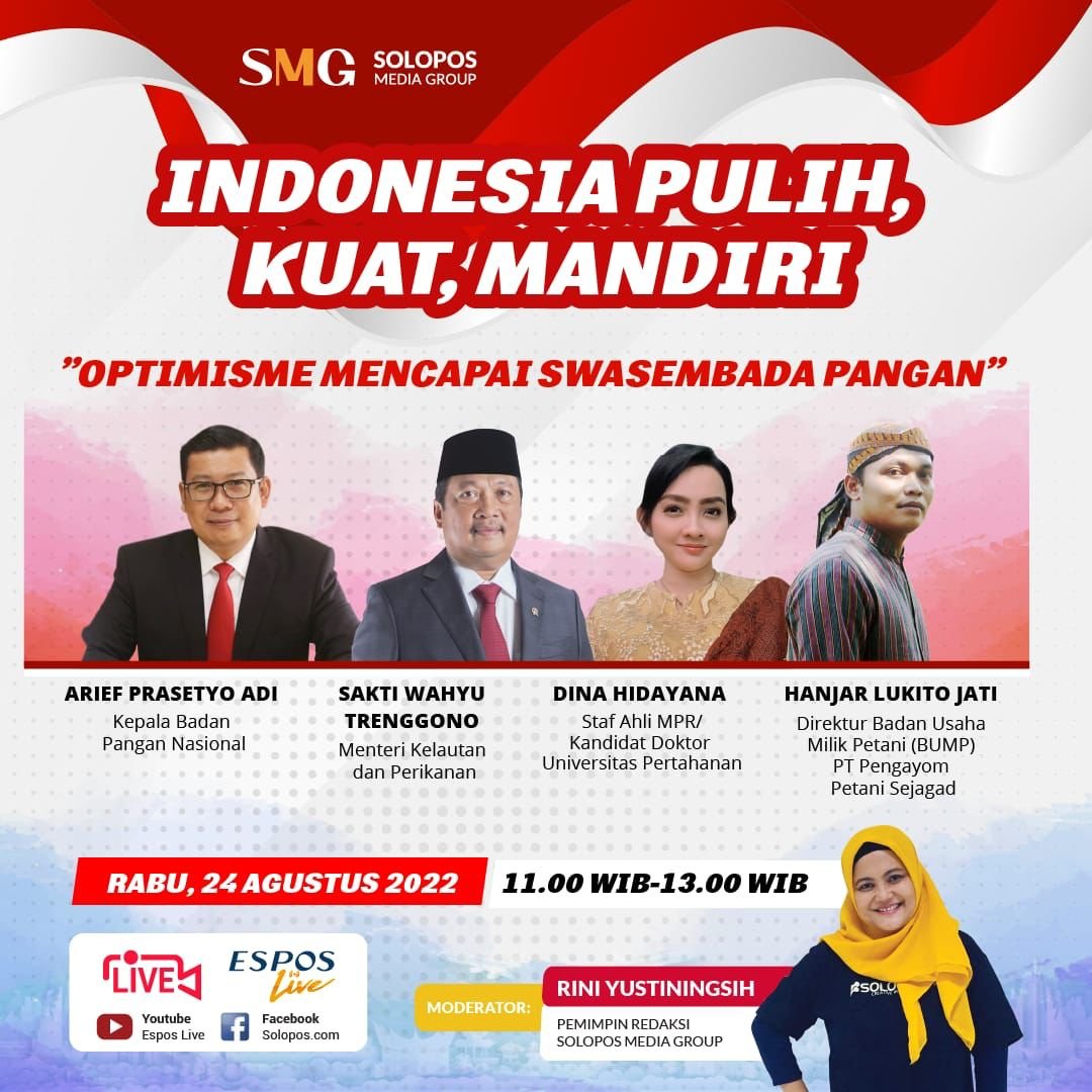 Hal tersebut disampaikan Dina dalam kesempatan Webinar Pangan Solopos yang berlangsung pada Rabu, 24 Agustus 2022. Acara digelar dalam rangkaian peringatan HUT RI ke 77.