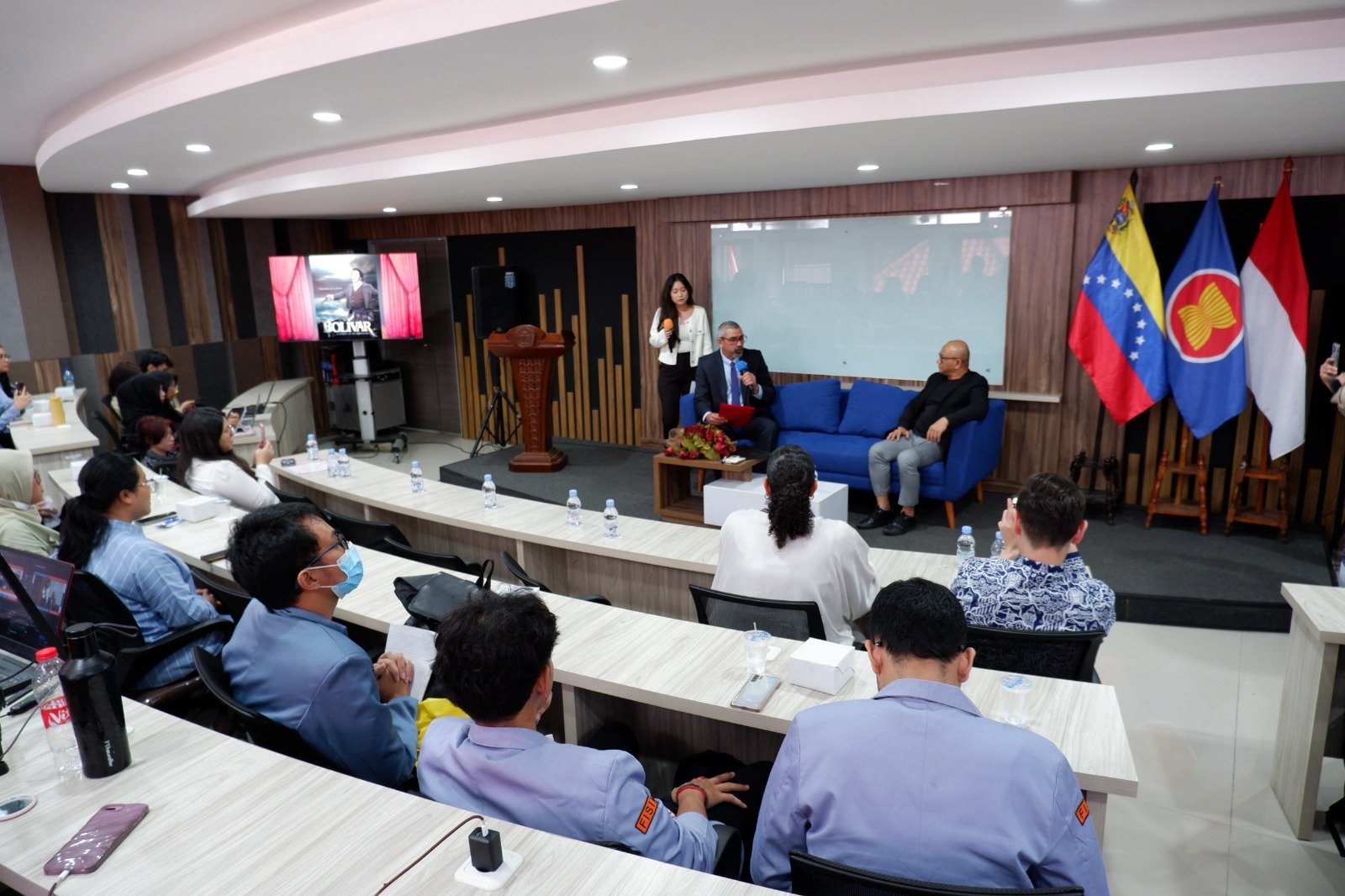 Kegiatan ini turut dihadiri oleh para Wakil Rektor, Plt. Dekan Fakultas Ilmu Komunikasi, mahasiswa, serta pelajar dari SMAN 78 Jakarta Barat, yang bersama-sama menyaksikan pemutaran film dan berdiskusi hangat mengenai sejarah perjuangan Venezuela.
