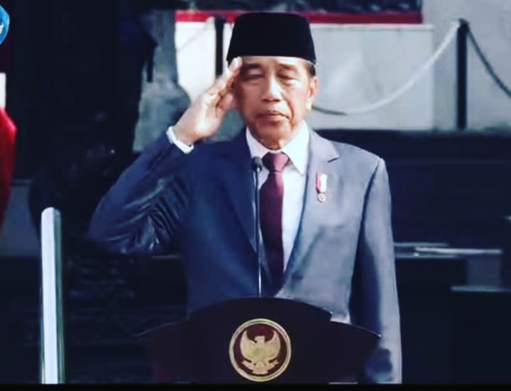Bertindak Sebagai Inspektur Upacara, Presiden Republik Indonesia, Joko Widodo dan Pemimpin Upacara Kombes Pol I Ketut Gede Adi Wibawa.