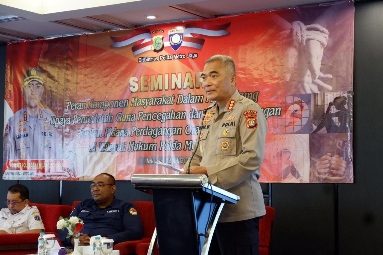 Jakarta – Dirbinmas Polda Metro Jaya melaksanakan kegiatan seminar Subsatgas pencegahan dan penanggulangan Tindak Pidana Perdagangan Orang (TPPO), di Hotel Diradja, Jakarta Selatan, Rabu (12/7/2023)