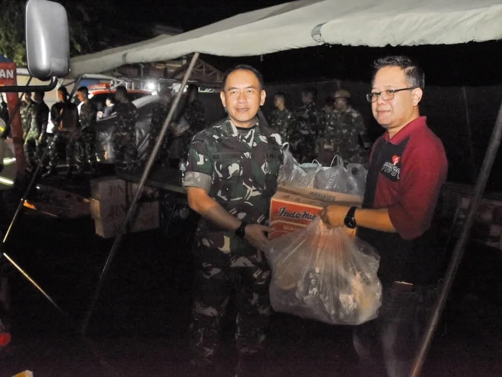 Disela pembenahan tenda yang sudah didirikan dan penyiapan alat perlengkapan dapur umum, Kabekangdam Jaya menerima bantuan logistik Artha Graha Peduli, yang akan disalurkan bagi warga masyarakat terdampak, yakni kampung Tanah Merah / Bendungan Melayu