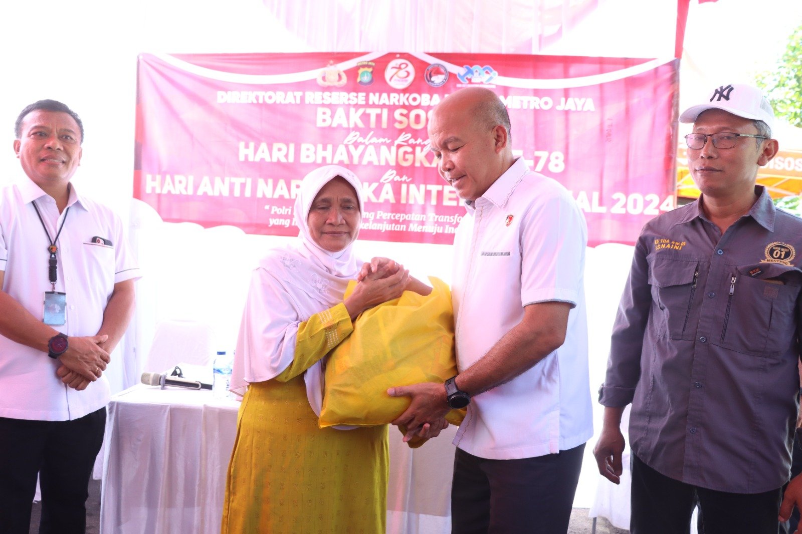 refubliknews.com, – Jakarta – Dirresnarkoba Polda Metro Jaya Kombes Pol Hengki S.I.K, M.H melaksanakan kegiatan penyuluhan dan Bakti Sosial dalam rangka Hari Bhayangkara ke-78 dan hari Anti Narkoba Internasional 2024 di Jl. Menteng Tenggulum RW 01 Kelurahan Menteng Kecamatan Menteng Jakarta Pusat. Rabu (26/6/2024).