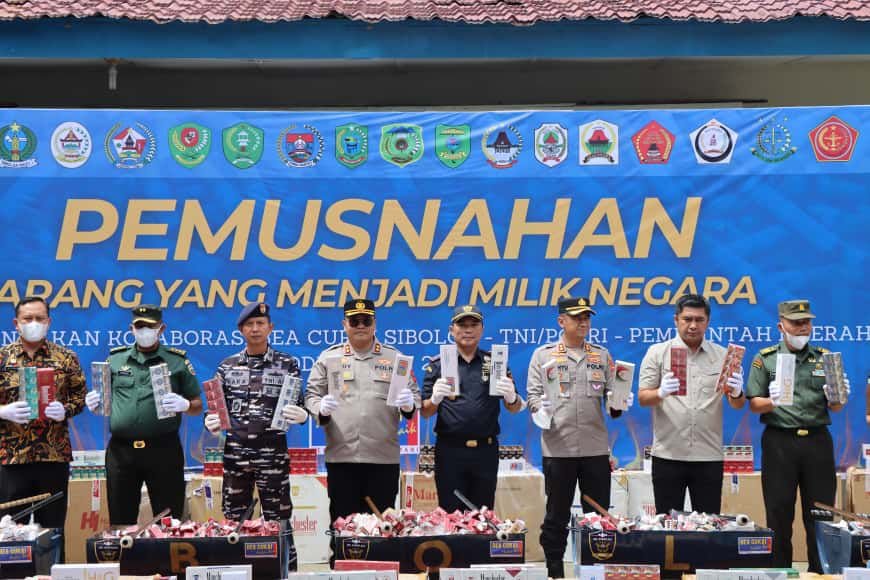 refubliknews.com || SIBOLGA – Kantor Pelayanan Pajak dan Bea Cukai (KPPBC) Tipe Pratama Sibolga, bersinergi dengan TNI dan Polri, melaksanakan pemusnahan Barang Milik Negara (BMN) hasil penindakan. Barang yang dimusnahkan didominasi oleh 1.351.388 batang rokok ilegal dan minuman keras (Minuman Mengandung Etil Alkohol/MMEA), dengan total nilai barang mencapai Rp1.882.244.740,00.