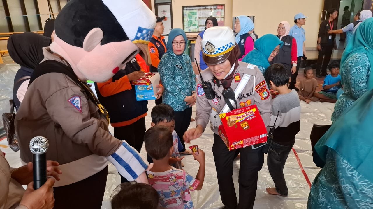 Kegiatan ini diisi dengan berbagai aktivitas, seperti menggambar, bermain, hingga bernyanyi bersama untuk menciptakan suasana ceria di tengah pengungsian. Selain itu, personel Ditlantas dan Polres yang terlatih dalam pendampingan psikologis turut terlibat dalam memimpin berbagai sesi permainan interaktif yang bertujuan membantu anak-anak melupakan trauma akibat kebakaran.