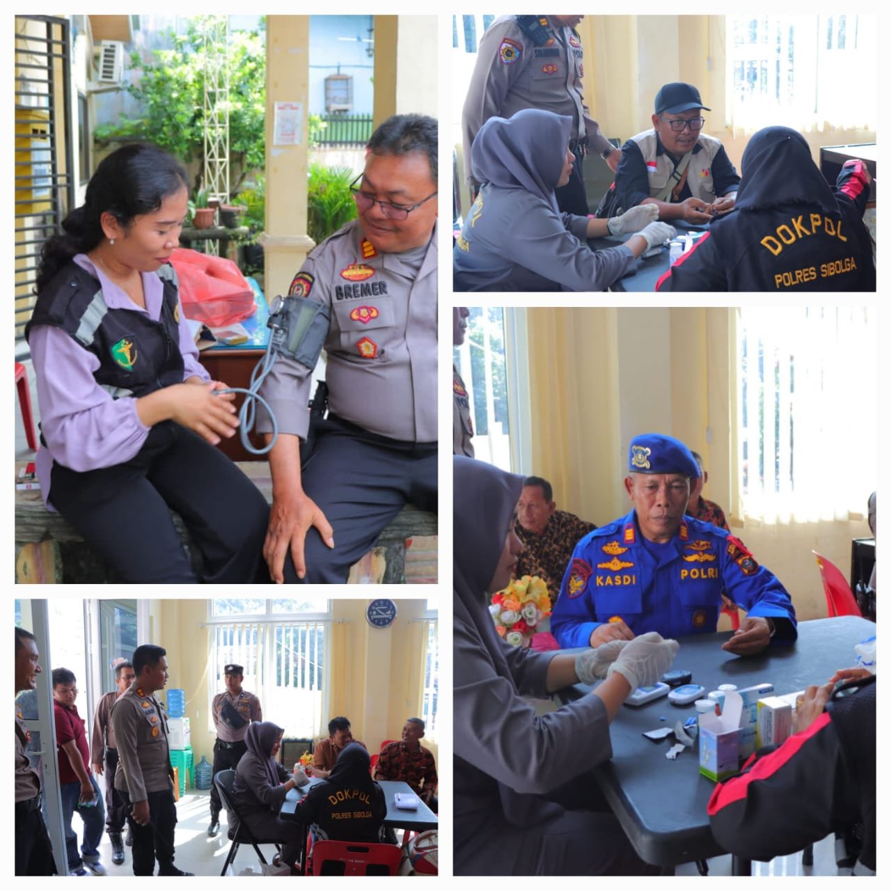 Kegiatan Kesehatan yang dikomandoi oleh Kasi Dokkes Sibolga, Aipda Janter Hutapea, SH sedang Dokter Klinik yaitu dr. Titi Suharty Hasibuan, ini diadakan pada Sabtu, 17 Februari 2024, mulai dari pukul 09.00 WIB hingga selesai. Pemeriksaan kesehatan ini diselenggarakan di lokasi strategis mencakup beragam Kantor Camat yaitu Kantor Camat Sibolga Selatan, Kantor Camat Sibolga Sambas, Kantor Camat Sibolga Kota dan Kantor Camat Sibolga Utara, Kota Sibolga.