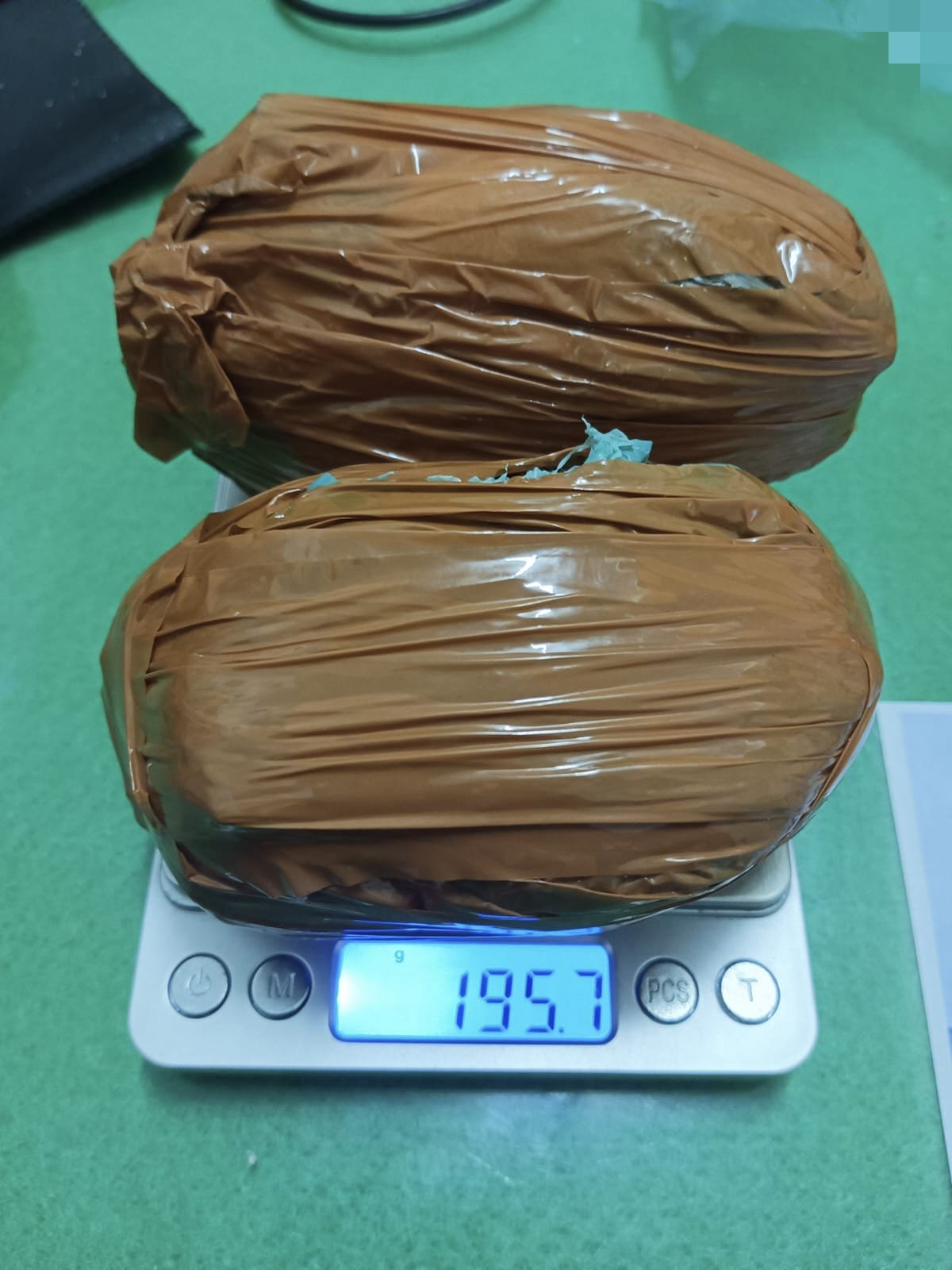 - 2 (dua) bal plastik berisi ganja yang dibalut lakban cokelat, dengan berat brutto 195,7 gram.