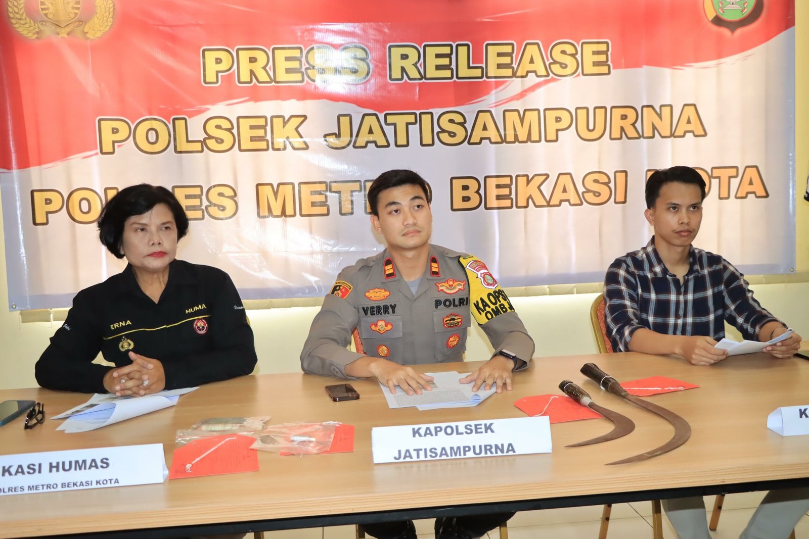 Kapolsek Jatisampurna Iptu Yovinus Verry S.M, dalam rilis kemedia mengatakan kejadian terjadi pada tanggal 18 maret 2024 sekitar pukul 04.00 wib aksi para pelaku melakukan tindak pidana pemerasan dengan pengancaman seperti termasuk pada pasal 368 KUHP terjadi di Warkop di depan SMK Yadika Jl Lurah Namat RT 02 RW 03 kel. Jatirangga, Kec. Jatisampurna Kota Bekasi.