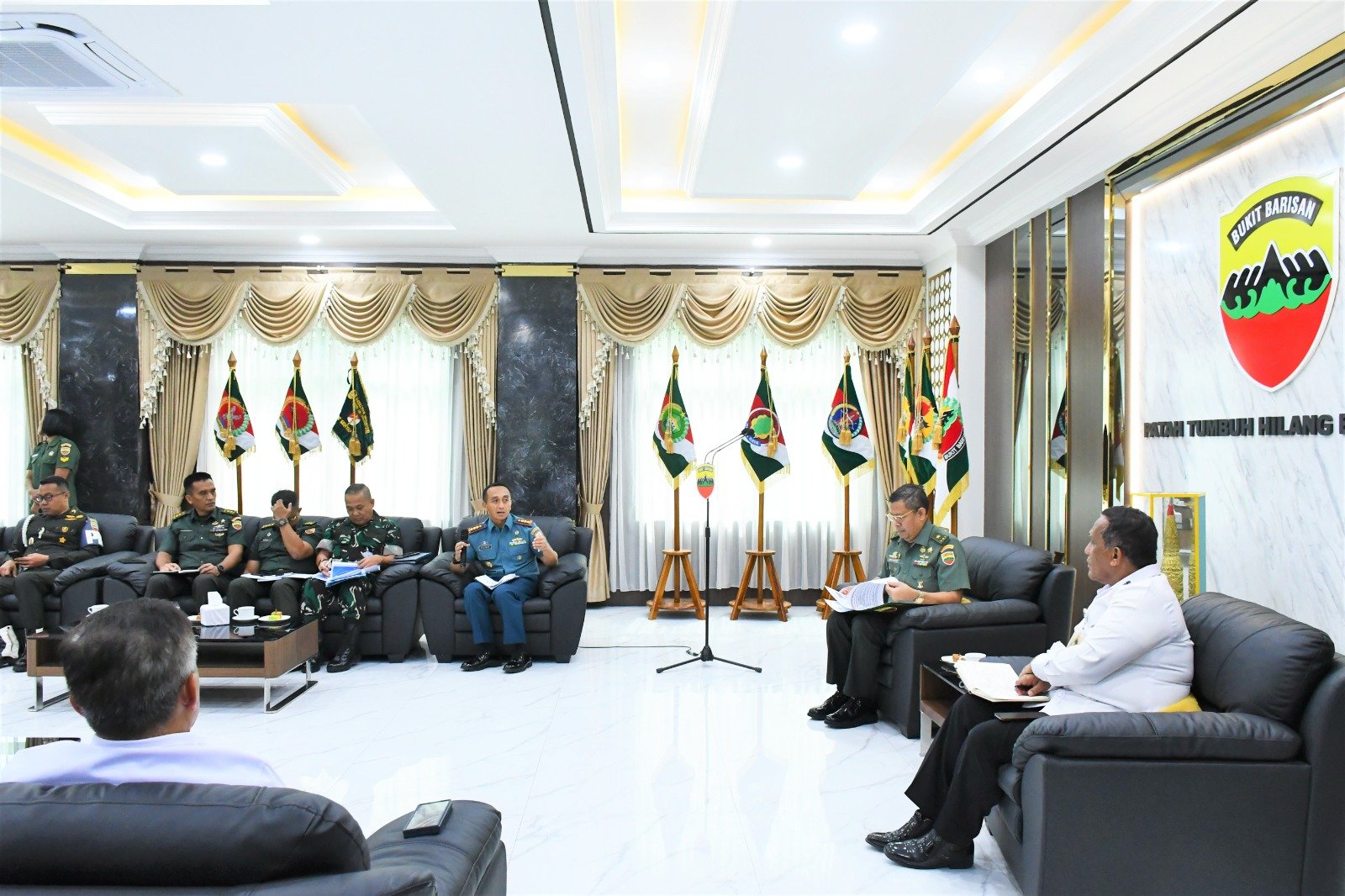 Turut hadir dalam kegiatan tersebut, Laksda TNI Suharto Lajide (Sahli Mekopolkam Bidang Kedaulatan Wilayah dan Kemaritiman), Marsda TNI Oka Prawira (Sahli Menkopolkam Bidang Pertahanan Negara), Irjen Pol Desmon Tarigan (Sahli Menkopolkam Bidang Ideologi dan Konstitusi), Irjen Pol Toni Hermawan (Sahli Menkopolkan Bidang Komunikasi dan Transformasi Digital), Brigjen TNI David Hutabarat (Korsahli Kodam I/BB), Kadispotdirga Lanud Soewondo, Staf Kodam I/BB.