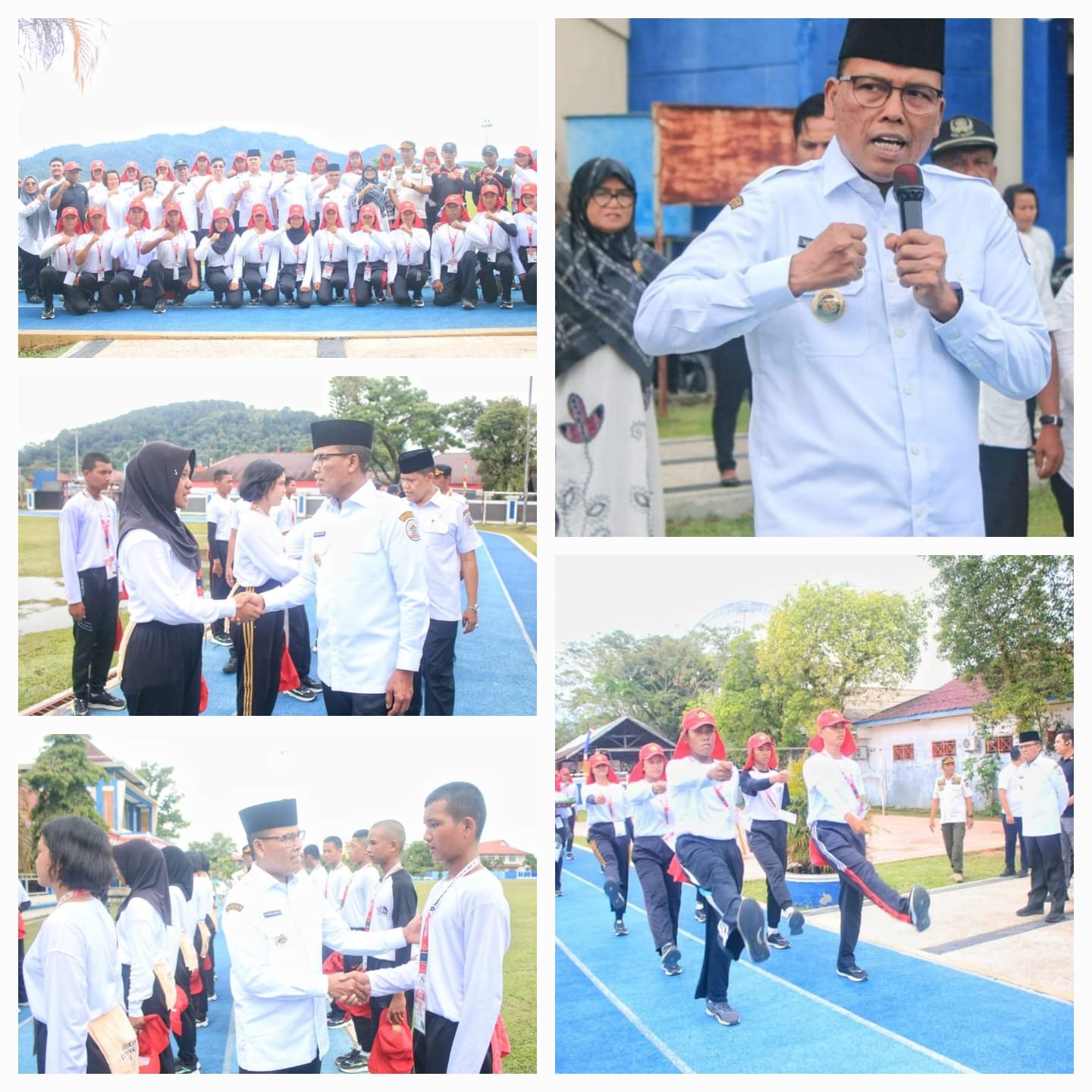 PANDAN-Dukung penuh Pasukan Pengibar Bendera Pusaka (Paskibraka) Kabupaten Tapanuli Tengah (Tapteng) Pj. Bupati Tapteng Dr. Sugeng Riyanta, SH, MH, meninjau Latihan Pasukan Paskibraka Kabupaten Tapteng, di lapangan Bola Kaki GOR Pandan, pada hari Rabu (7/8/2024).