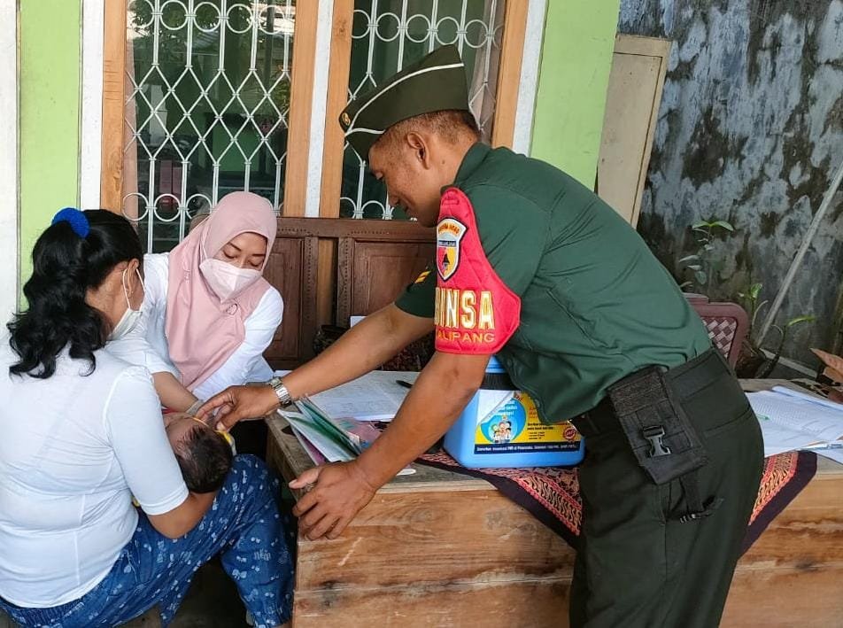 Dalam rangka mendukung program pemerintah, Babinsa Koramil 0808/09 Sutojayan Kodim 0808/Blitar Sertu Buadi, melaksanakan kegiatan pendampingan Posyandu balita, bertempat di rumah Bapak Jito Ketua RT. 04 RW. 01 Lingkungan Brubuh Kel. Kalipang Kec. Sutojayan Kab. Blitar, Rabu (05/04/2023).