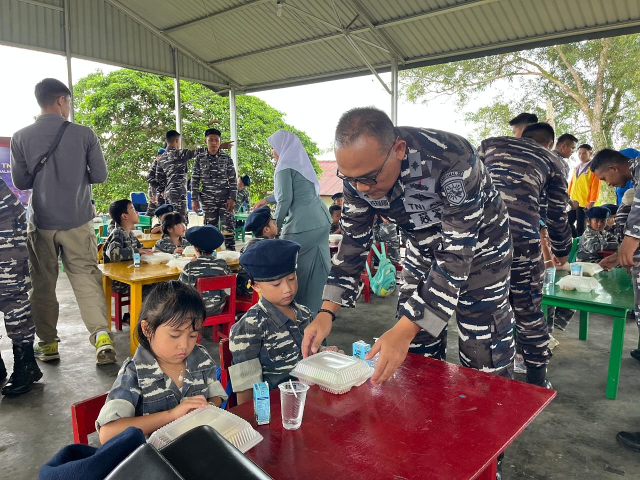 refubliknews.com,- TNI AL, Dabo Singkep,- Dukung Progam Pemerintah, Pangkalan TNI AL Dabo Singkep Berikan Makan Siang Bergizi Kepada 60 Siswa/Siswi TK Hangtuah, Jumat (20/12/2024).