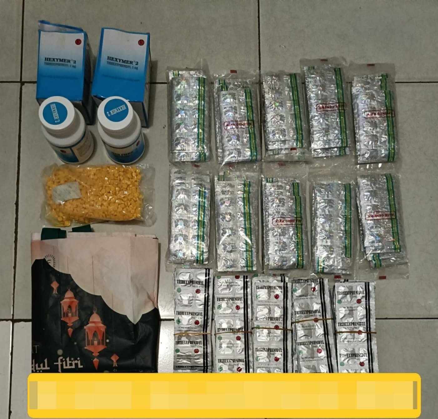 “Saat dilakukan penggeledahan di dalam kamar rumah tersangka, ditemukan barang bukti berupa 4.884 tablet obat tanpa izin edar, 5 pack plastik klip bening, uang tunai sebesar Rp30.000, serta 1 unit handphone,” ungkap AKP Tatang. Rabu (23/4/2025)
