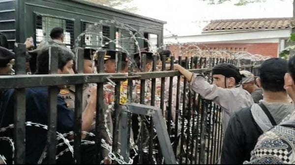 Kericuhan memanas saat juru sita PN Selatan yang dipimpin Ausri Mainur mendekati pagar besi di sisi kiri didampingi aparat kepolisian.
