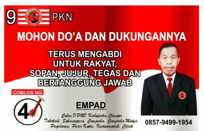 refubliknews.com, | Cianjur, – Jawa Barat, – Empad Calon legislatif Dewan Perwakilan Rakyat Daerah (DPRD) Kabupaten Cianjur di dapil 5 dari Partai Kebangkitan Nusantara (PKN) dengan Nomor Urut 4 siap terus maju dengan sepenuhnya mengabdi untuk rakyat.