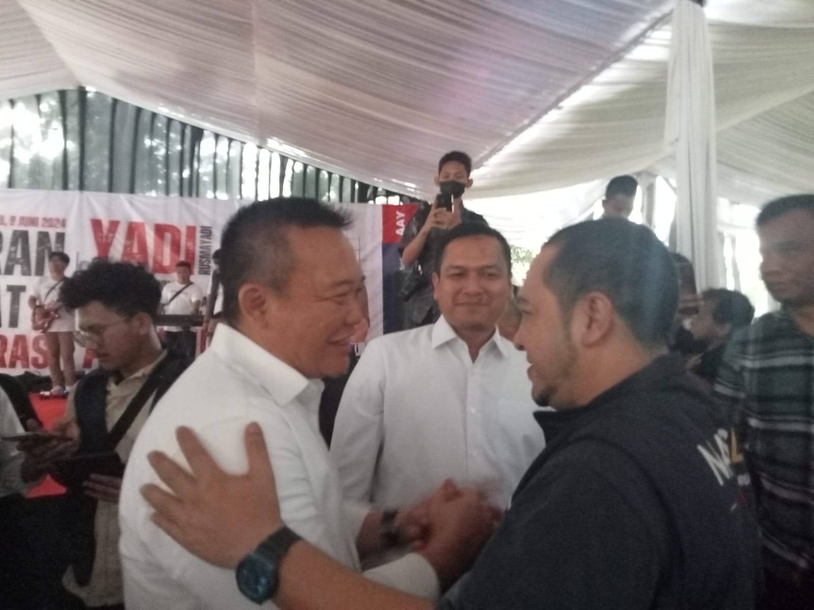 Yadi Kusmayadi didampingi Istri dan keluarga besar berbaur dengan warga pendukungnya menyambut para undangan diantaranya ada Husen Bajri, pemilik rumah sakit Holistic Puwakarta dan rombongan partai pengusung menambah semarak acara itu, dihibur penampilan seni Pencak Silat Kang Yadi.