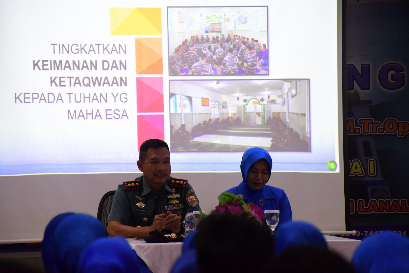 “Kepada Segenap Prajurit saya di Lanal Tarempa dan juga PNS/PHL, mari sama-sama kita tingkatkan Keimanan dan Ketaqwaan kita kepada Allah SWT Tuhan Yang Maha Esa. Jadikan Iman dan Taqwa sebagai modal utama sebagai pondasi dalam kehidupan kita sehari-hari serta niatkan semua pekerjaan yang kita lakukan khususnya dalam pengabdian kita di TNI Angkatan Laut dalam hal ini di Lanal Tarempa ini karena Allah SWT, Insyaallah atas izin Allah SWT kita akan senantiasa diberikan kemudahan dan kelancaran serta senantiasa dalam perlindungan Allah SWT dijauhkan dari berbagai masalah,” pesan pembuka Danlanal Tarempa.