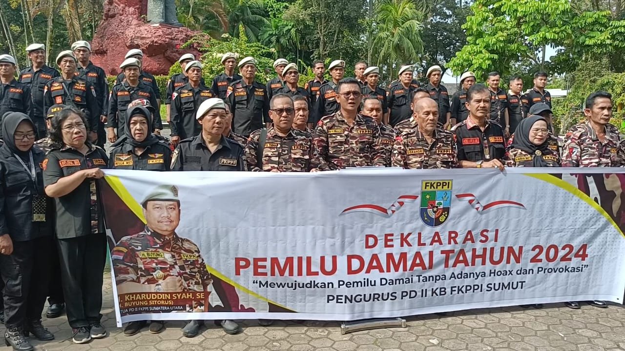Sumatera Utara, Dalam rangka mendukung terselenggaranya Pemilihan Umum (Pemilu) tahun 2024, Pengurus Daerah II Keluarga Besar Forum Komunikasi Putra Putri Purnawirawan dan Putra Putri TNI-Polri Sumatera Utara (PD II KB FKPPI Sumut) gelar deklarasi dukung Pemilu Damai 2024.
