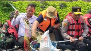 Jakarta – Ratusan personil yang terdiri dari TNI, Polri, Masyarakat dan unsur lainya masih tetap menjalankan “Grebek Kali Ciliwung” dengan memakai perahu karet sambil menyerok sampah yang berada dipermukaan air. Kegiatan ini adalah program TNI dalam menyambut Hut RI ke-78