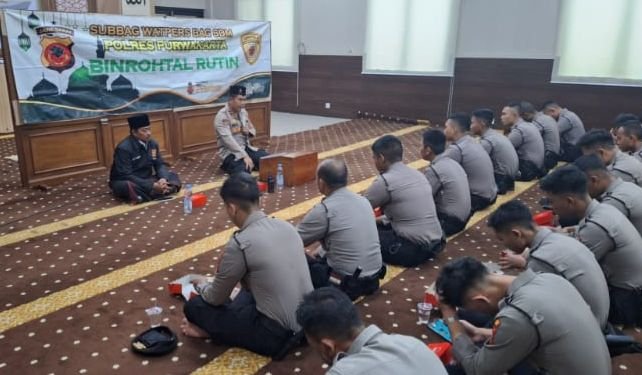 refubliknews.com, – Purwakarta – Lewat Bimbingan Rohani dan Mental (Binrohtal) Polres Purwakarta, Polda Jawa Barat berupaya meningkatkan iman dan taqwa kepada Tuhan Yang Maha Esa para anggota Polri khususnya anggota Polres Purwakarta.