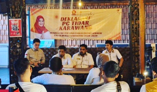 refubliknews.com,-Karawang | Pengurus Cabang (PC) Tunas Indonesia Raya (Tidar) Kabupaten Karawang, Jawa Barat, menggelar deklarasi dukungannya kepada Gina Fadlia Swara sebagai calon kepala daerah pada Pilkada Kabupaten Karawang 2024.