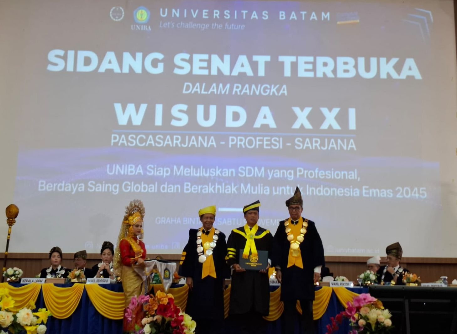 Sidang Senat Terbuka dalam rangka Wisuda XXI Pasca Sarjana-Profesi- Sarjana, dibuka oleh Rektor Universitas Batam Prof. Dr. Ir. Samsul Rizal., M. Eng., IPU., ASEAN Eng. Dalam laporannya, Ketua Pelaksana Prof. Dr. Ir. Chabullah Wibisono, M.M., mengatakan bahwa pada tahun 2024, Universitas Batam (UNIBA) telah mewisuda 670 wisudawan/wisudawati.