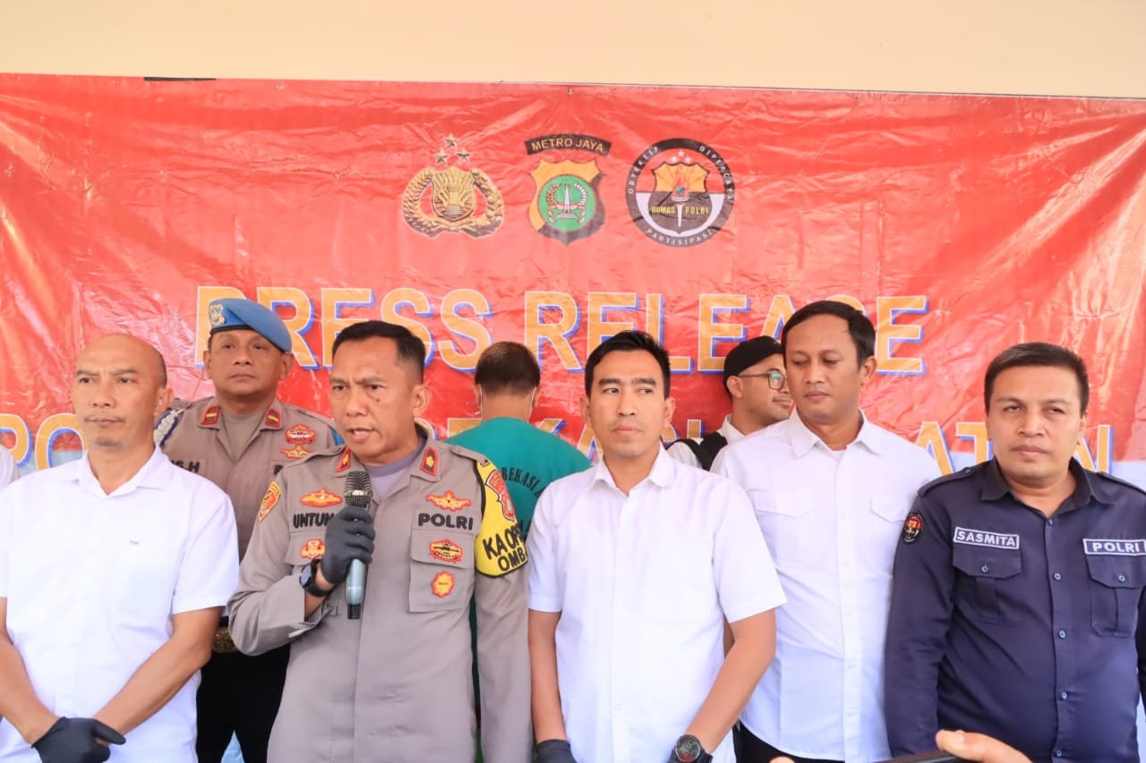 refubliknews.com, – BEKASI – Polsek Bekasi Selatan mengadakan konferensi pers terkait pengungkapan kasus peredaran narkoba jenis sabu. Rilis dipimpin oleh Kapolsek Bekasi Selatan Kompol Untung Riswaji didampingi Kanit Reskrim AKP Imam Prakoso dan Kaur Penmas Polres Metro Bekasi Kota Ipda AA Sasmita beserta tersangka FH dan barang bukti shabu 2 kg di Mapolsek Bekasi Selatan, Senin (15/7/2024) Siang.