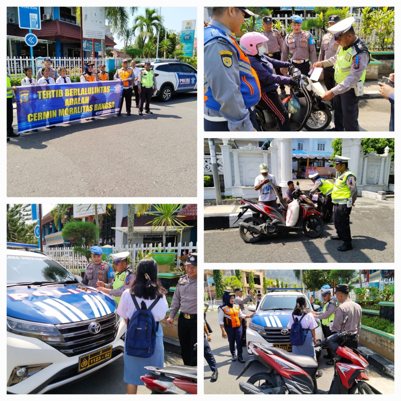 Kapolres Sibolga AKBP Achmad Fauzy, SH, SIK, MIK, melalui Kasat Lantas Polres Sibolga AKP Muhammad Joni menjelaskan, dalam rangka menekan Pelanggaran dan Angka Kecelakaan lalu lintas, tentunya Masyarakat harus dihimbau dan diajak untuk patuh peraturan lalu lintas. Sosialisasi dengan membagikan Brosur dan Stiker Himbauan kepada Pengguna Jalan adalah salah satu cara. Petugas juga memberikan penjelasan langsung mengenai peraturan lalu lintas. Kegiatan ini dilaksanakan di Jalan SM. Raja simpang Jalan Diponegoro Kelurahan Pancuran Gerobak Kecamatan Sibolga Kota, Kota Sibolga. Yang didukung oleh seluruh Personil Satuan Lalu Lintas Polres Sibolga.