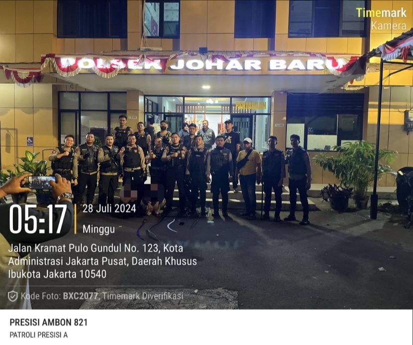 refubliknews.com, – Jakarta Pusat – Tim Patroli Perintis Presisi Satuan Samapta Polres Metro Jakarta Pusat bersama Polsek Johar Baru dan 3 Pilar berhasil mengamankan 2 remaja yang diduga hendak melakukan tawuran di Jl. Kramat Jaya Baru RT 01/10 Kelurahan Johar Baru Kecamatan Johar Baru Jakarta Pusat, Minggu (28-7-2024) sekitar pukul 04.00 WIB.