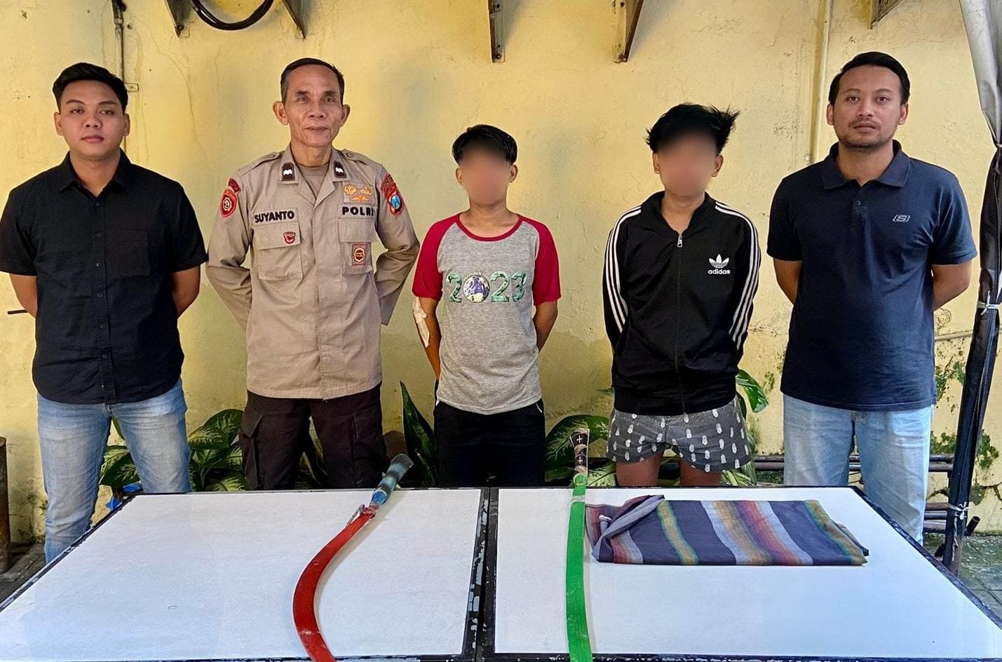 “Mereka hendak tawuran siang hari. Sehingga langsung kami amankan bersama warga sekitar,”kata Iptu Suroto.Dari hasil interogasi, Dua remaja ME, 14, dan FP, 16, warga Semampir, Surabaya, menuju ke lokasi bersama satu temannya yang kabur hendak tawuran dengan gangster pemuda hijrah.