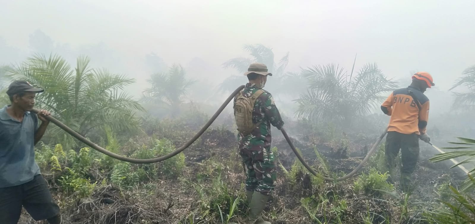 Setelah berjam-jam berjibaku melawan ganasnya si jago merah, akhirnya Tim Penanggulangan Kebakaran Hutan dan Lahan (Karhutla) yang terdiri dari Personel Pos TNI AL Tanjung Datuk, Kodim, dan Polres Inhil, serta BPBD dan masyarakat berhasil memadamkan kebakaran lahan gambut seluas kurang lebih 10 hektar.