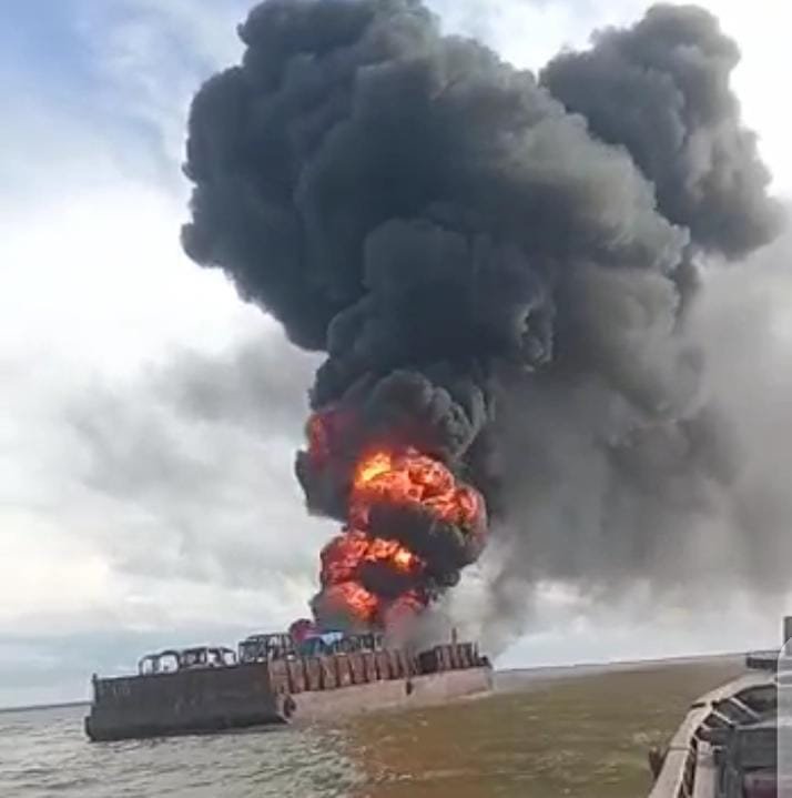 Peristiwa terbakarnya Tongkang MAP XXI yang bermuatan alat berat dan ditarik TB Makmur Selatan ini terjadi sekira pukul 14.00 WIB pada Lokasi 0’56.480′ S 103’49.151′ E.