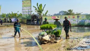 refubliknews.cim, | KAB. BANDUNG – Bupati Bandung Dadang Supriatna bersama Dandim 0624/Kabupaten Bandung Letkol Inf Tinton Amin Putra melaksanakan penanaman padi dalam rangka kegiatan gerakan nasional ketahanan pangan tahun 2024 di Kampung Lampegan RT 01/RW 04 Desa Bojongkunci Kecamatan Pameungpeuk Kabupaten Bandung, Selasa (16/7/2024).
