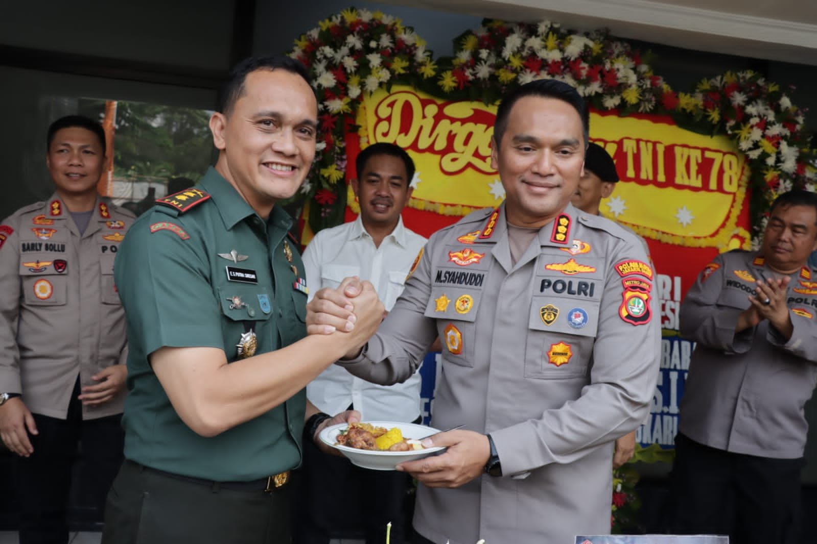 Kapolres Metro Jakarta Barat Kombes Pol M Syahduddi menyampaikan ucapan selamat HUT TNI ke 78 kepada Dandim 0503/JB dan seluruh Personil yang hadir,
