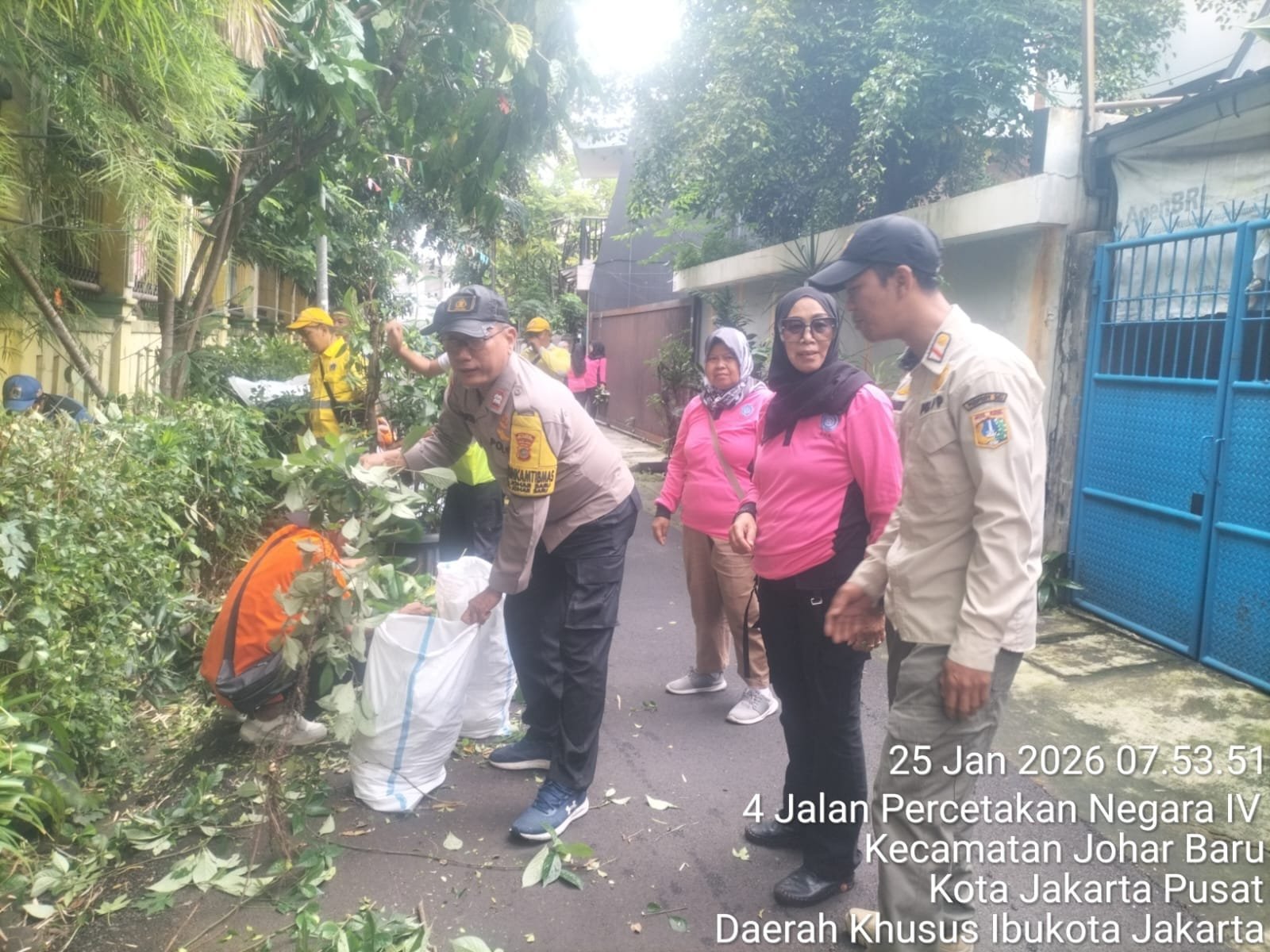 Kerja bakti dipimpin oleh Sekretaris Kecamatan Johar Baru, Ilham, bersama Ketua RW 09, serta melibatkan berbagai unsur lintas sektor, mulai dari Bhabinkamtibmas, perangkat kelurahan, Satpol PP, PPSU, hingga dinas terkait.