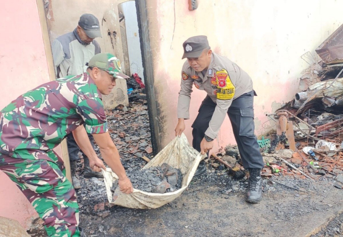 refubliknews.com, – Purwakarta – Pasca kebakaran yang terjadi pada Jumat, 14 Februari 2025, hingga menghanguskan satu rumah warga Kampung Bobojong, Desa Nangewer, Kecamatan Darangdan, Kabupaten Purwakarta, personel gabungan dari TNI dari Koramil Darangdan dan Polri dari Polsek Darangdan terjun langsung ke lapangan untuk memberikan bantuan.