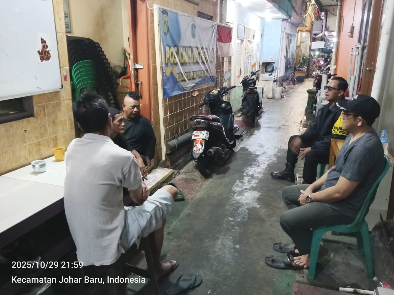 refubliknews.com,- Jakarta Pusat – Bhabinkamtibmas Kelurahan Kampung Rawa Aipda Ikhwan melaksanakan patroli wilayah dan kunjungan ke Pos Satkamling RW06, Jl. Rawa Sawah 2 RT04 RW06, Kelurahan Kampung Rawa, Kecamatan Johar Baru, Rabu malam (29/10/2025) pukul 22.00 WIB hingga selesai.