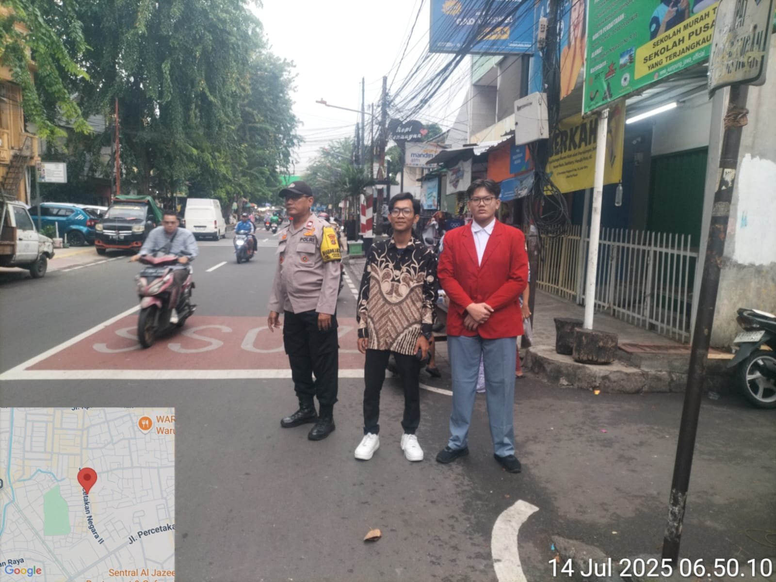 refubliknews.com, || Jakarta Pusat — Wujud sinergi antara Polri dan dunia pendidikan tampak jelas dalam kegiatan pengaturan lalu lintas yang berlangsung di depan SMK Kampung Jawa, Jalan Percetakan Negara II, Kelurahan Johar Baru, Kecamatan Johar Baru, Jakarta Pusat, pada Senin (14/7/2025) pukul 06.00 WIB.