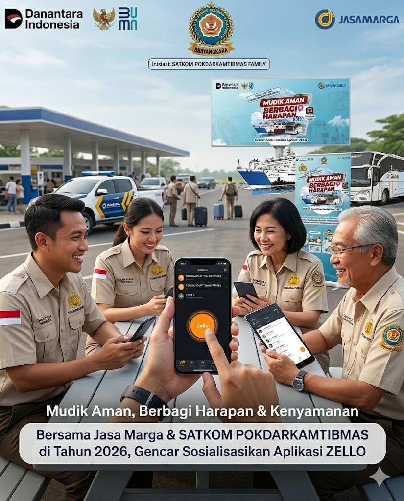 Menjelang arus mudik hari raya idul fitri 1446 H 2026. jajaran satkom Pokdarkamtibmas bhayangkara mengedukasi kepada masyarakat agar mengakses Aplikasi ZELLO WALKIE TALKIE sebagai server untuk memudahkan masyarakat mendapatkan informasi terkini seputar arus mudik, kondisi lalu lintas, cuaca, dan informasi penting lainnya.