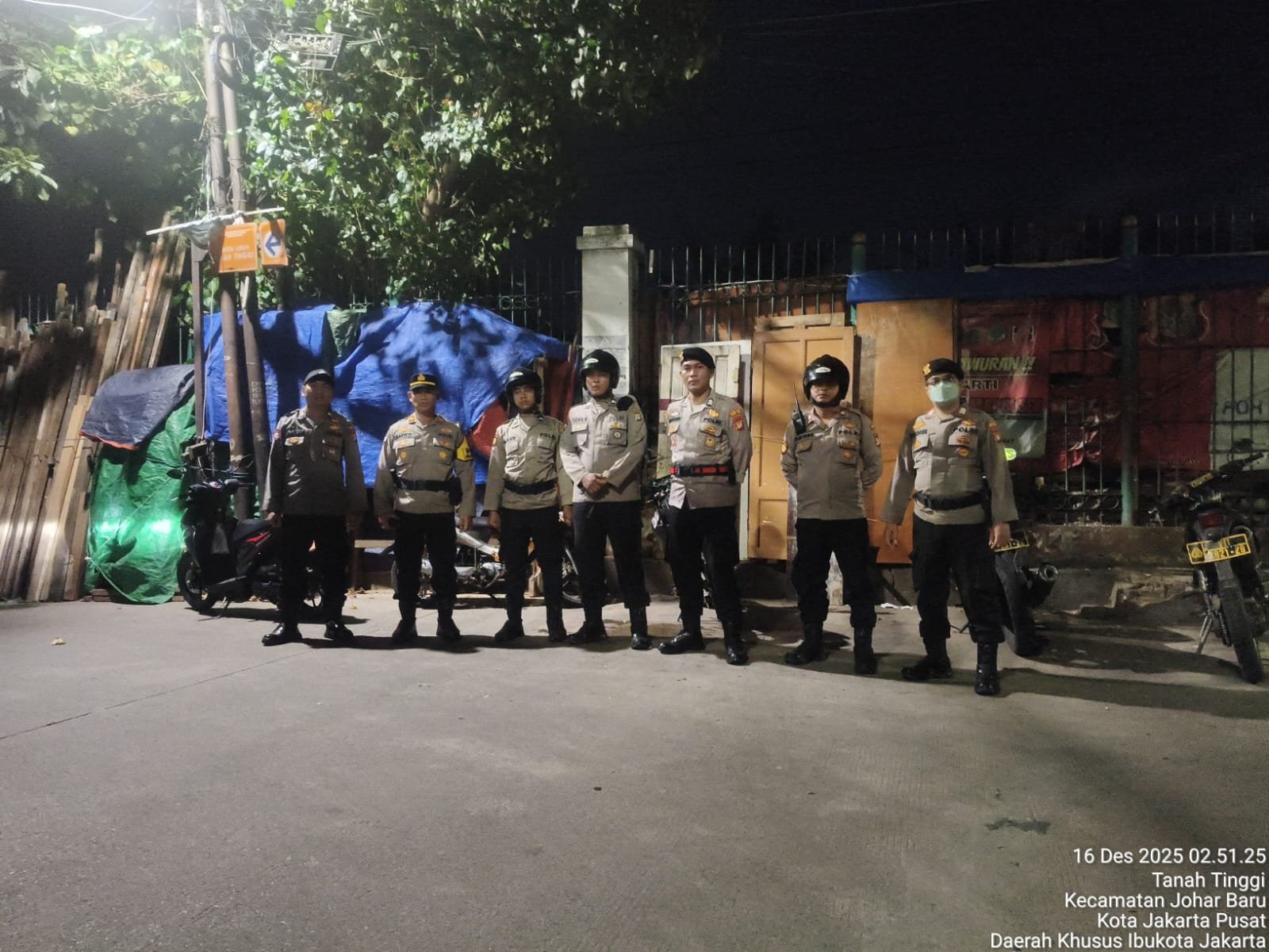 Jakarta Pusat — Guna memastikan situasi keamanan dan ketertiban masyarakat (kamtibmas) tetap terjaga, jajaran Polsek Johar Baru melaksanakan patroli cipta kondisi pada Selasa (16/12/2025) dini hari. Patroli antisipasi gangguan kamtibmas tersebut dimulai pukul 02.11 WIB dengan menyasar sejumlah titik rawan di wilayah hukum Polsek Johar Baru.