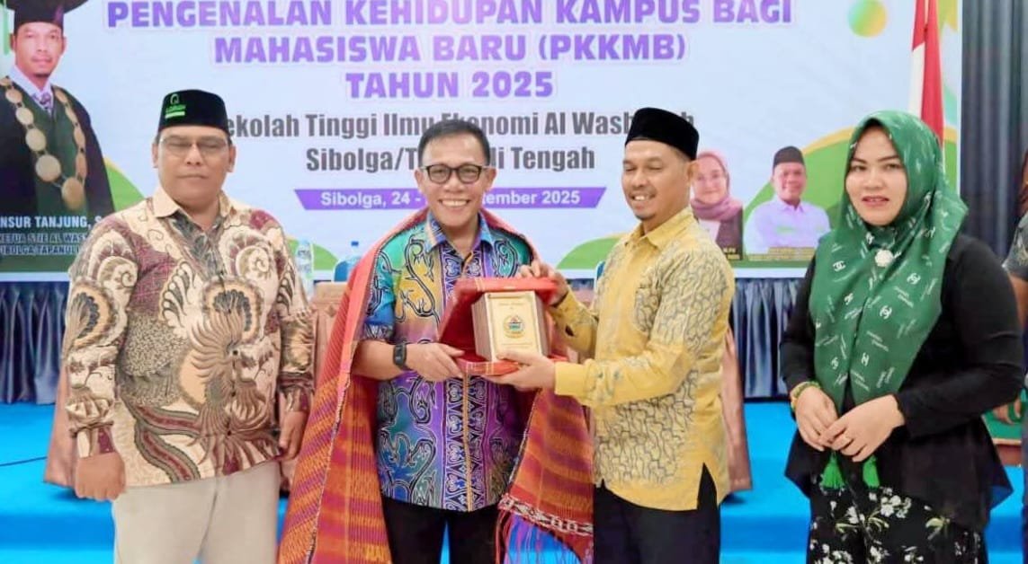 SARUDIK – Bupati Tapanuli Tengah Masinton Pasaribu, SH, MH menjadi Narasumber kegiatan Pengenalan Kehidupan Kampus bagi Mahasiswa Baru (PKKMB) 2025 di STIE Al Washliyah Sibolga-Tapanuli Tengah di Aula Kampus STIE Al-Washliyah Sibolga-Tapanuli Tengah, Kamis (25/09/2025).