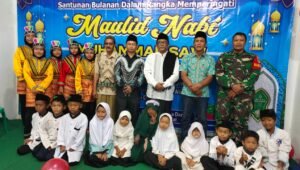 Sebagai upaya meningkatkan kegiatan keagamaan Babinsa Koramil 01/Tambun Peltu Yudhantara hadiri kegiatan Maulid Nabi Muhammad SAW di