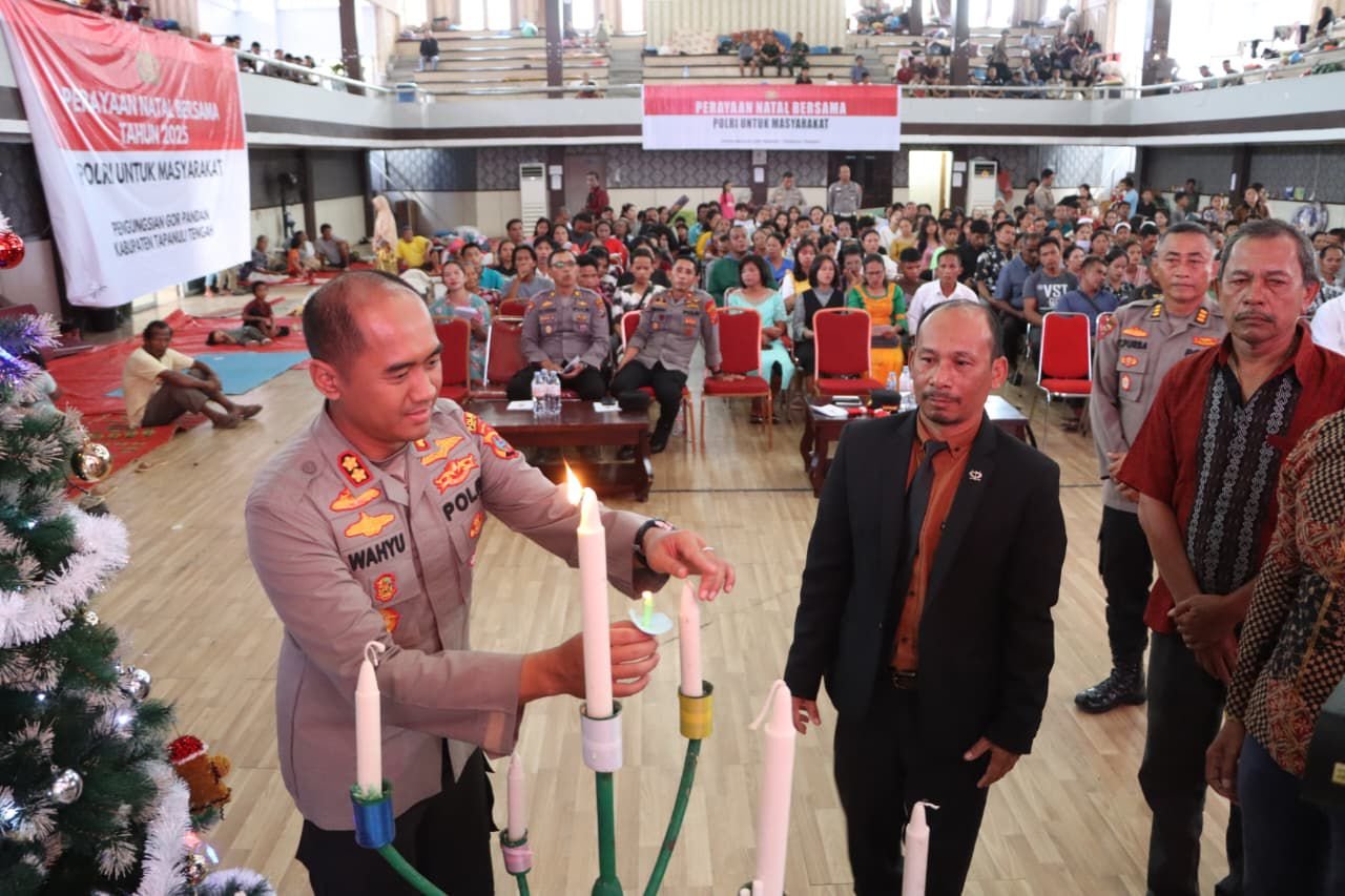 Suasana haru sekaligus bahagia menyelimuti GOR Pandan saat sekitar 250 warga pengungsian mengikuti rangkaian ibadah dan perayaan. Cahaya lilin natal yang dinyalakan oleh Kapolres bersama Pendeta Noah Pasaribu, S.Th, menjadi simbol bahwa kegelapan akibat bencana akan segera berganti dengan terang harapan.