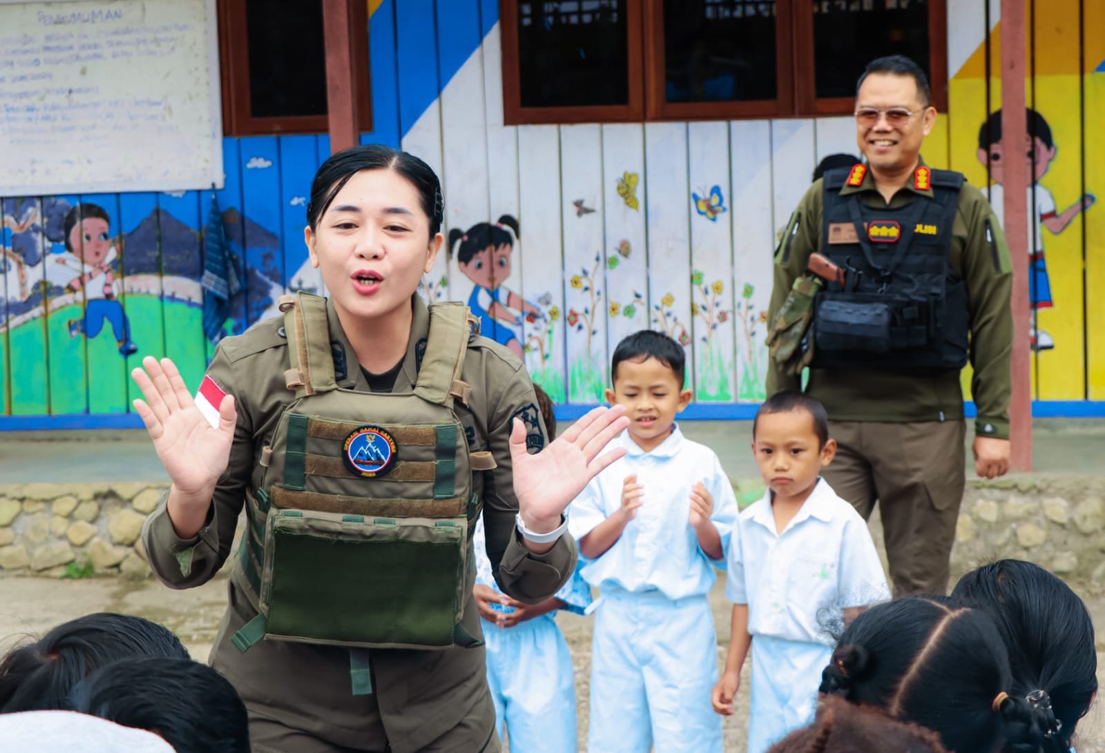 Kasatgas Humas Ops Damai Cartenz-2025, Kombes Pol Yusuf Sutejo, S.I.K., M.T., didampingi Srikandi Polri Ops Damai Cartenz-2025, Brigpol Ita Sombo Allo, hadir membawa kebahagiaan bagi para siswa. Kehadiran mereka disambut dengan antusias oleh para guru dan murid, yang tampak gembira mengikuti berbagai kegiatan interaktif yang sarat dengan tawa dan keceriaan, Jum’at (14/2).