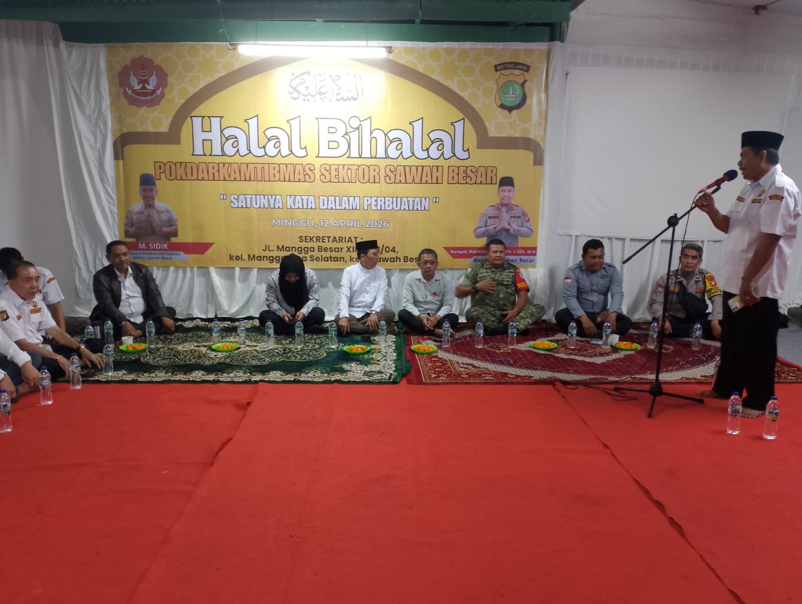 Jakarta Pusat – Kapolsek Sawah Besar Kompol Rahmat Himawan, S.Sos., M.H., yang di wakilkan melalui Kanit Binmas AKP Dwi Budianto, S.H., menghadiri kegiatan Halal Bihalal Pokdar Kamtibmas bersama Polri dan Tiga Pilar yang berlangsung pada Minggu (12/4/2026) pukul 19.30 WIB di Jl. Mangga Besar XIII, Mangga Dua Selatan, Sawah Besar, Jakarta Pusat. Dalam kesempatan tersebut, Kanit Binmas menyampaikan apresiasi setinggi-tingginya serta penghormatan kepada seluruh personel Pokdar Kamtibmas atas dedikasi dan peran aktifnya dalam membantu Polri menjaga stabilitas keamanan dan ketertiban masyarakat (kamtibmas) sehingga tetap aman dan terkendali di wilayah hukum Polsek Sawah Besar.