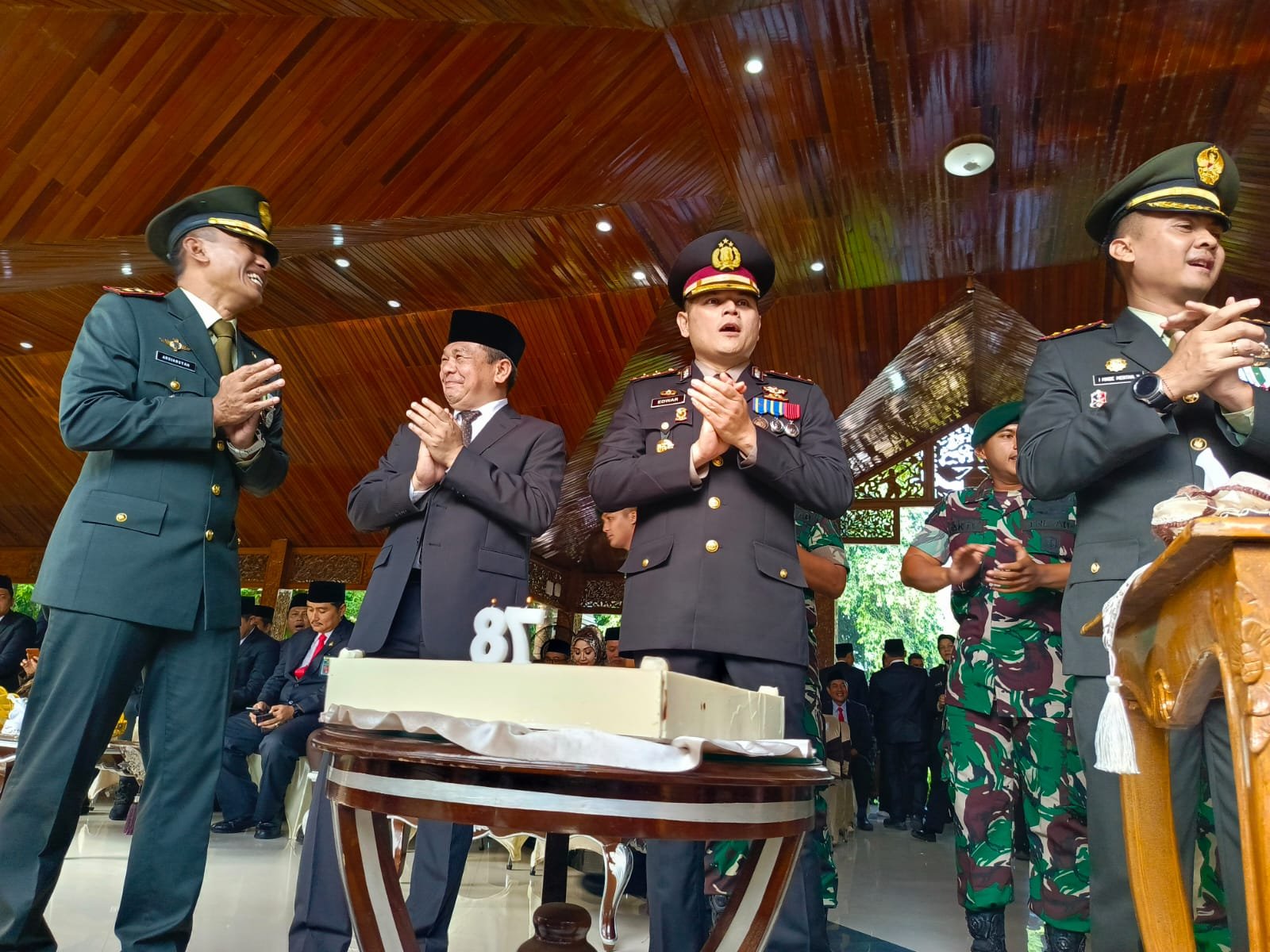 Terlihat, usai upacara peringatan Hari Bhayangkara Ke-78 yang berlangsung di Taman Pesanggrahan Pajajaran, para petinggi POLRI dan TNI Bersama PEMDA di Kabupaten Purwakarta kompak merayakan hari lahir Kepolisian Republik Indonesia ini.