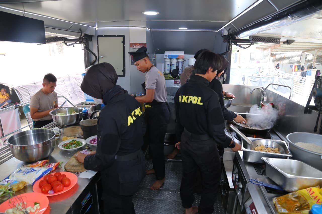 Taruna Tingkat III Akademi Kepolisian, Intan Gustava Rongrean, menyampaikan bahwa dapur lapangan tersebut menyiapkan berbagai menu makanan bergizi untuk masyarakat.