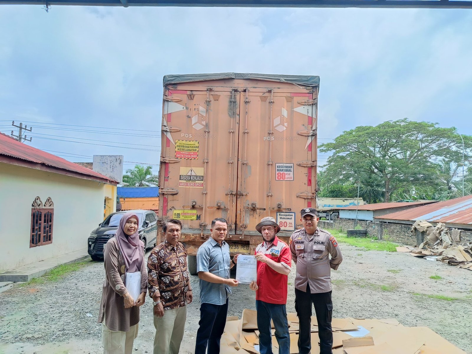 Nampak ketua KPU Batubara Erwin dan sejumlah staf skretariat KPU Kab Batubara serta staf Bawaslu dan pihak kepolisian nampak sigap menerima logistik berupa kotak suara pilkada yang masuk pada Minggu, (29/9/24), digudang logistik desa Sumber padi Kecamatan Lima Puluh Kab Batubara.