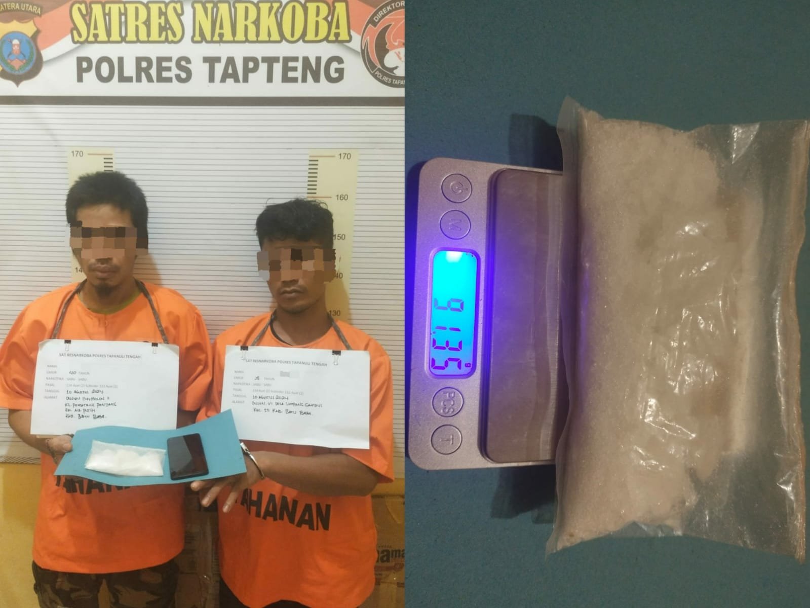 Kapolres Tapanuli Tengah AKBP Basa Emden Banjarnahor, SIK, MH melalui Kasat Narkoba Polres Tapteng Iptu Gunawan Sinurat, SH, MH menjelaskan bahwa barang bukti yang berhasil disita yaitu Satu paket besar narkotika jenis sabu-sabu yang dibungkus dalam plastik bening dengan berat bruto 91,35 gram, serta 1 (Satu) unit handphone Android.