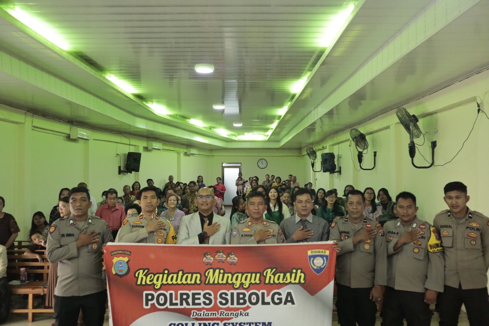 refubliknews.com,- SIBOLGA — Polres Sibolga menggelar kegiatan Minggu Kasih dengan mengunjungi Gereja Pentakosta di Indonesia (GPdI) Immanuel yang berlokasi di Jalan Pari, Kelurahan Pasar Belakang, Kecamatan Sibolga Kota. Kegiatan yang dimulai pukul 10.30 WIB ini bertujuan menyampaikan himbauan dan pesan-pesan Kamtibmas guna mendukung terciptanya situasi keamanan dan ketertiban masyarakat (Kamtibmas) yang aman dan kondusif di wilayah Kota Sibolga.