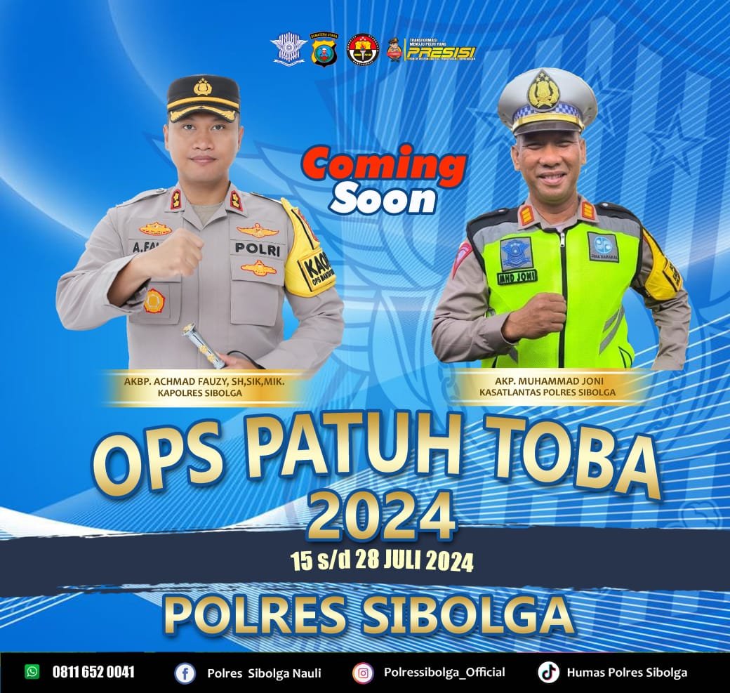 SIBOLGA – Dalam rangka menciptakan Kondisi Keamanan Keselamatan Ketertiban dan Kelancaran Lalulintas (Kamseltibcarlantas) Pasca pelaksanaan Hari Bhayangkara Ke-78 Tahun 2024, Polda Sumut beserta jajaran Polres akan melaksanakan Operasi Kepolisian Bidang Lalu Lintas yaitu Operasi “Patuh Toba” mulai tanggal 15 s/d 28 Juli 2024, selama 14 hari.